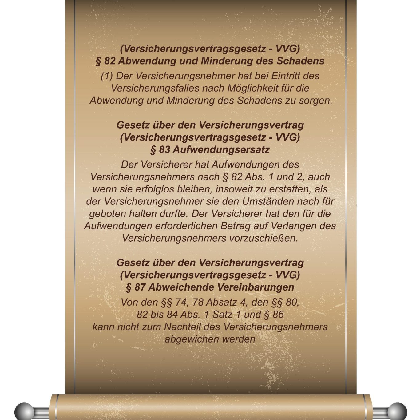 Diese sogenannte Schadenminderungspflicht ist gesetzlich im Versicherungsvertragsgesetz (VVG 82 und 83) verankert. Wird sie vernachlässigt, kann der Versicherungsschutz eingeschränkt oder sogar ganz verweigert werden.